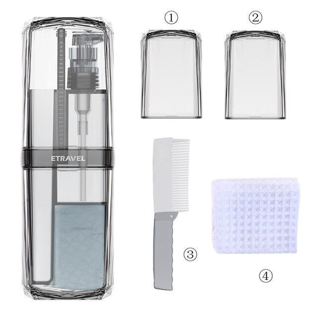 Goblet multifonction, complète, compacte et portable, belle apparence, durable, petite taille. Il peut prendre : 1 peigne pliable, 1 serviette, 2 bouteilles de shampoing, 2 brosse à dents, 1 dentifrice, etc… Fenêtre transparente en un coup d'œil. Il est facile à ouvrir et à fermer, conception à double grille, peut transporter environ 100ml.